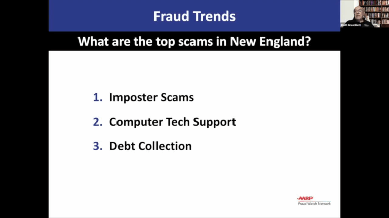 Elliott Greenblott, AARP’s Vermont Fraud Watch Coordinator, dives into the top three Scams affecting Vermonters: Imposter Scams, Computer Tech Support…